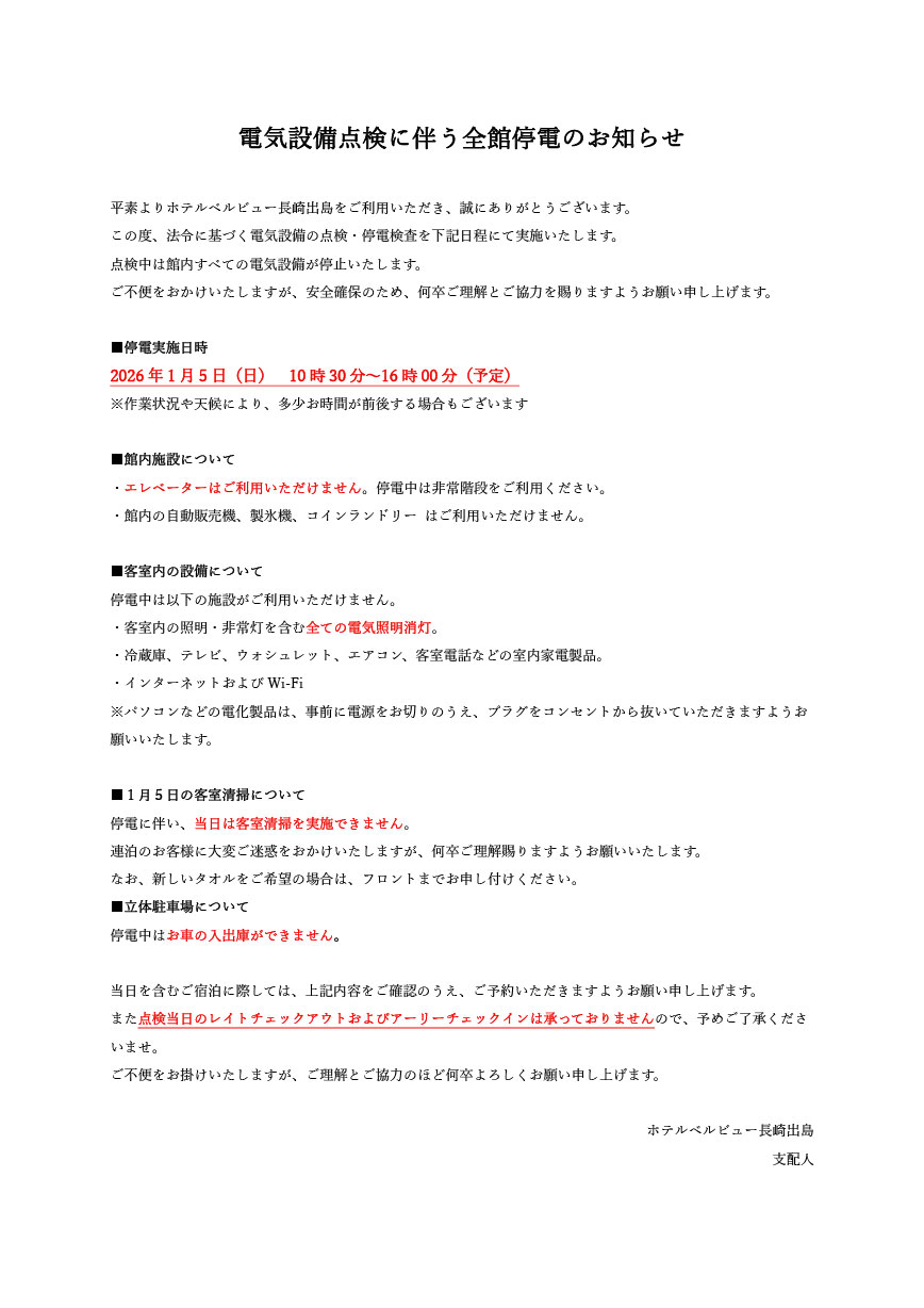 電気設備点検に伴う全館停電のお知らせ (日・英)PDFはこちら